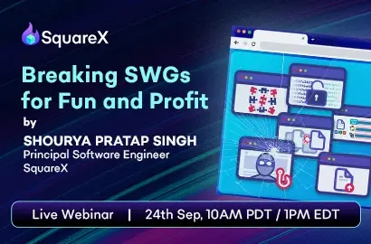 Read More Breaking SWGs for Fun and Profit Secure Web Gateways are architecturally unable to defend against Last Mile Reassembly Attacks — a vulnerability SquareX first discovered and disclosed at DEF CON 32 last year. This webinar will show you the 20+ Last Mile Reassembly Techniques and how to defend against them.